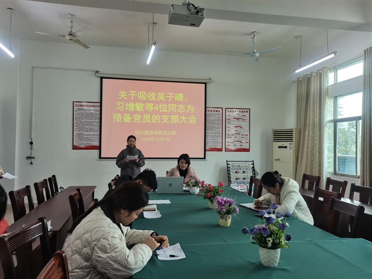 【现代服务学院廖斐报道】近日,现代服务学院党支部在三教207党员活动室召开党员大会。大会由现代服务学院副院长、群工委员江敏主持,支部全体党员参加。
