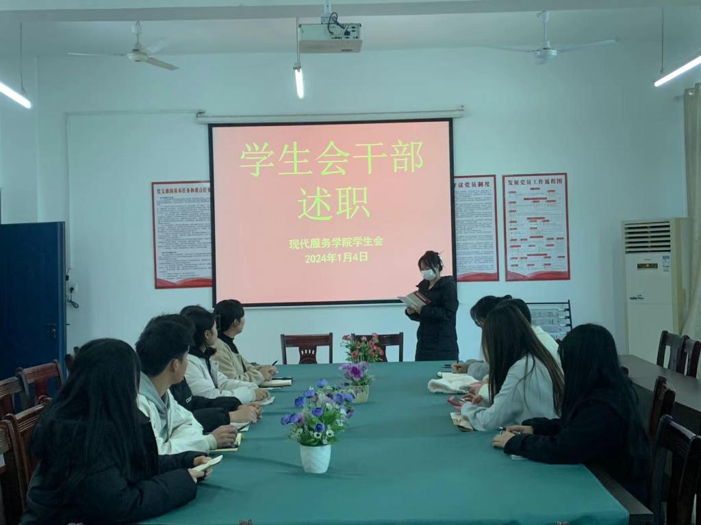 【现代服务学院徐卉报道】1月4日,现代服务学院学生会在老三教207党员活动室开展了学生干部述职评议会议。会议由学生会主席卢祎主持,全体学生会干部参加。