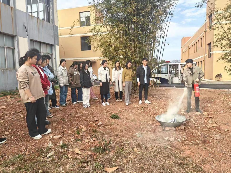 学校保卫处刘凯凯老师为师生们讲解并演示了干粉灭火器和消防栓的使用方法。在刘老师的指导下,师生们纷纷上前学习操作灭火器,体验灭火过程。现场演练井然有序。