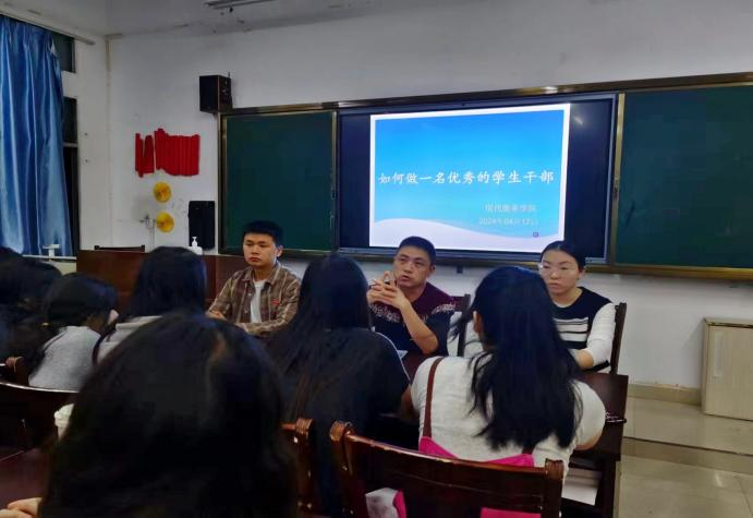 【现代服务学院周明霞报道】4月18日,现代服务学院在自强楼408召开了2024年春季学生干部培训会暨学生代表座谈会,旨在加强学生干部的领导力、组织协调能力,深入探讨学生干部面临的挑战与机遇。活动由分院副院长胡小平主持,分院学生干部、部分学生代表参加。