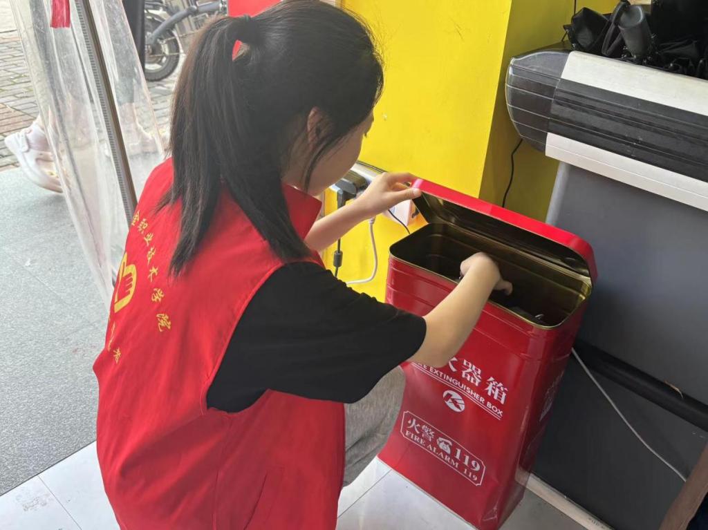 同学们还深入社区各个角落,对居民楼、商铺等场所进行消防安全检查。