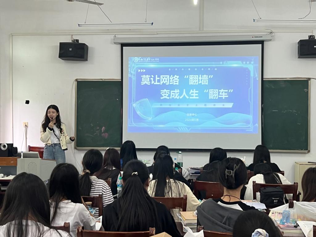 接着,从网络安全的基本概念、常见的网络风险以及防范措施等方面进行了深入浅出的讲解。她们结合实际案例,分析了网络诈骗、网络谣言、个人信息泄露等问题的危害性和防范方法,让学生们对网络安全有了更深刻的认识。