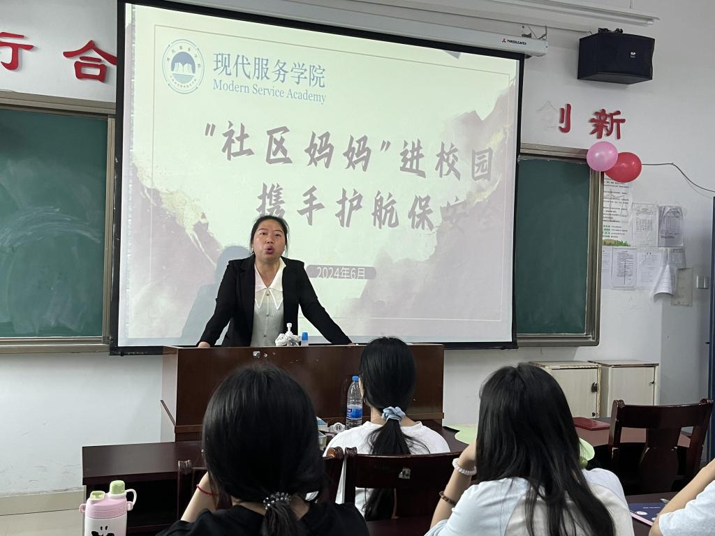 【现代服务学院徐卉报道】为促进现代服务学院学生的身心健康成长,2024年6月6日,现代服务学院开展了一项温馨而有意义的活动——“社区妈妈”进校园。这位来自河下社区的“爱心妈妈”,带着对教育的热情和对学生们的关爱,走进了校园。