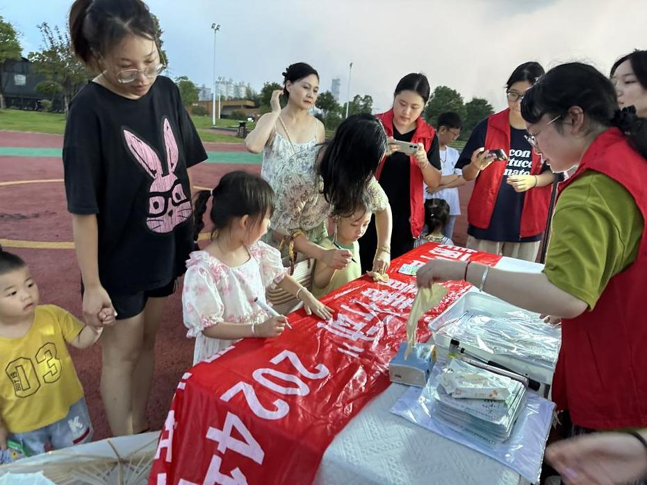 活动当天,现场热闹非凡,家长与孩子们应约而至。在环保倡议的横幅前,他们郑重地签下自己的名字。随后,在志愿者的悉心引导下,家长与孩子们满怀好奇与喜悦地踏入了非遗探趣的奇妙世界,共同开启了一场关于文化传承与绿色生活的美好旅程。