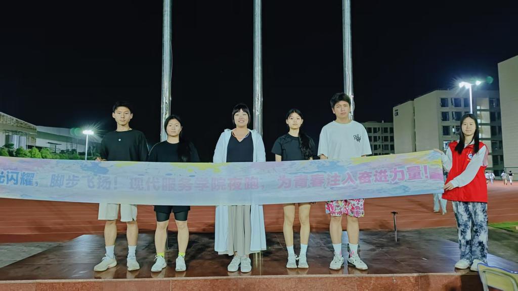 【现代服务学院徐卉报道】2025年5月12日傍晚,现代服务学院赣锋校区化身荧光海洋,一场主题为“星光夜跑,活力校园”的青春盛宴热力开启,师生们佩戴荧光装备,用汗水与欢笑点亮了校园的璀璨夜晚。