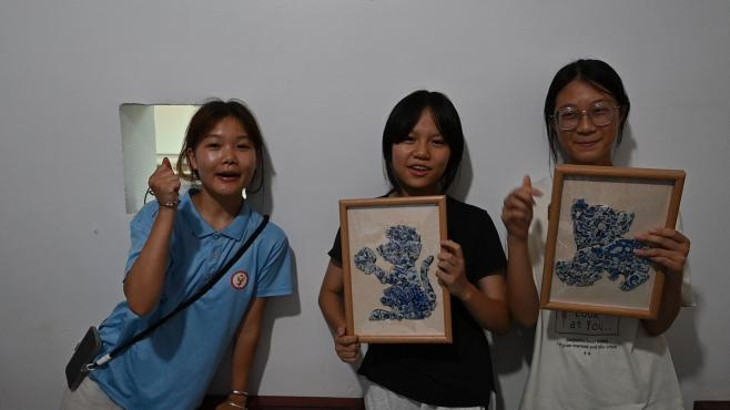 队员们蹲在孩子身边,把在景德镇学到的“补瓷”技巧化繁为简:“边缘要像老匠人补碗那样对齐,才会好看。”当孩子们举着作品相互展示时,那些带着稚拙的青花贴画里,既有景德镇千年瓷艺的基因,又生长出独属于乡村的童真创意。