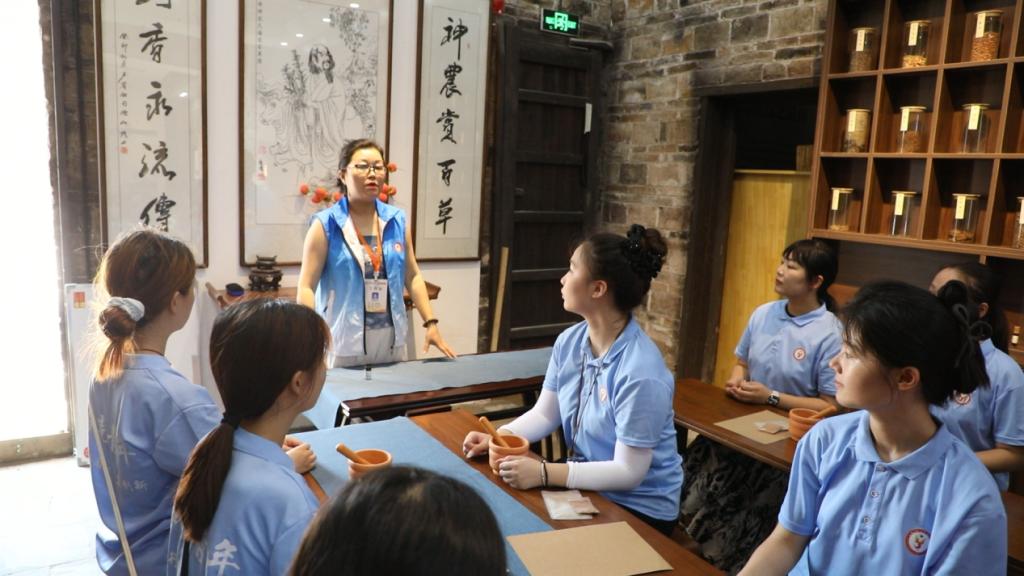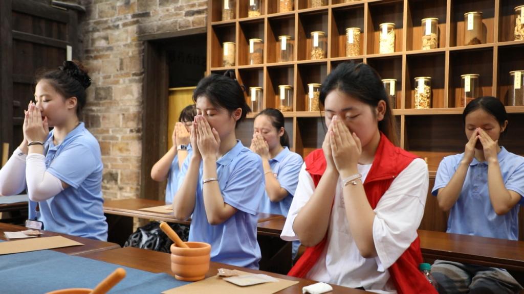 更妙的是语言韵律与药材特性的暗合。“‘紫苏’两个字都是平声,读起来轻快,就像它解表散寒的性子;‘当归’是阳平加去声,声调起伏里藏着‘引血归经’的深意。” 非遗传承人在课堂上的比喻,让学子们恍然大悟:原来普通话的声韵平仄里,早就藏着古人对草木药性的理解。当学子们用标准音齐声念出 “藿香、佩兰、丁香”,唇齿间不仅溢出药材名称的韵律,仿佛还飘着古村药铺里那股混合着百种草木的醇厚香气。
