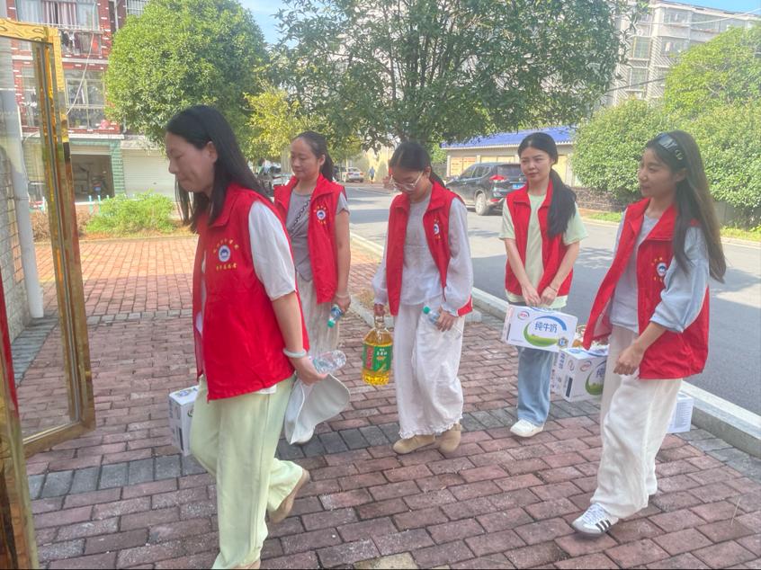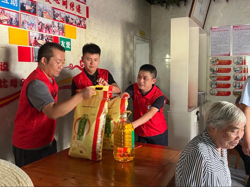 带着从村史中汲取的精神力量和从交流中了解的实际需求,党员们来到了颐养之家。他们为老人们送上了精心准备的大米、食用油、牛奶等慰问品,并与老人们促膝长谈,嘘寒问暖,以“物质+精神”双关怀,让志愿服务更有温度。