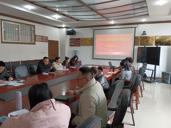 2022年2月24日上午,思政部党支部第一届党员大会于图书馆四楼小会议召开。会议由思政部副主任周维主持,学院党委书记杨乐文以普通党员身份参加了党员大会。