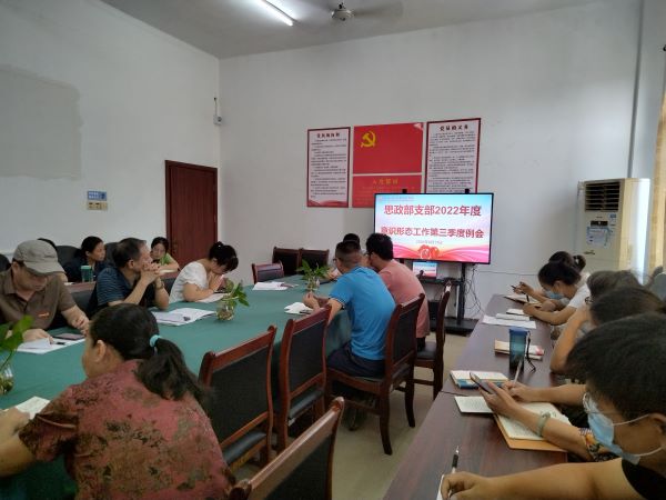 2022年9月14日,在图书馆四楼党员活动室,思政部支部召开2022年度意识形态工作第三季度例会。会议由支部副书记、部门负责人周维主持。