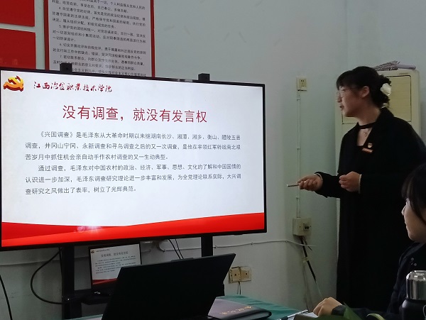 2022年11月15日下午,思政部开展主题党课活动。活动由李菁文老师带来了一堂精彩的党课——传承红色基因,把握历史主动,罗坊会议及兴国调查的历史影响及现实意义。