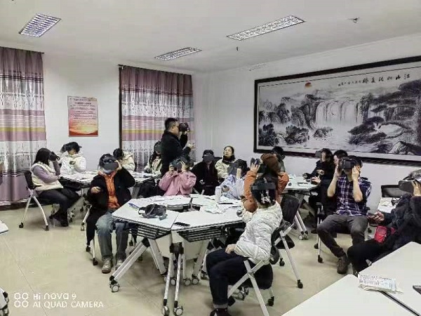 赵老师从思想政治教育专业视角,围绕“红色资源VR是什么?为什么?怎么样?怎么看?”等方面问题,对思政课专职教师如何在教学中融入红色资源进行全面介绍。赵老师的讲解深入浅出,通过理论学习、示范课堂展示、片段展示等多种形式引领参训教师加深对VR技术的认识,掌握相关设备使用。