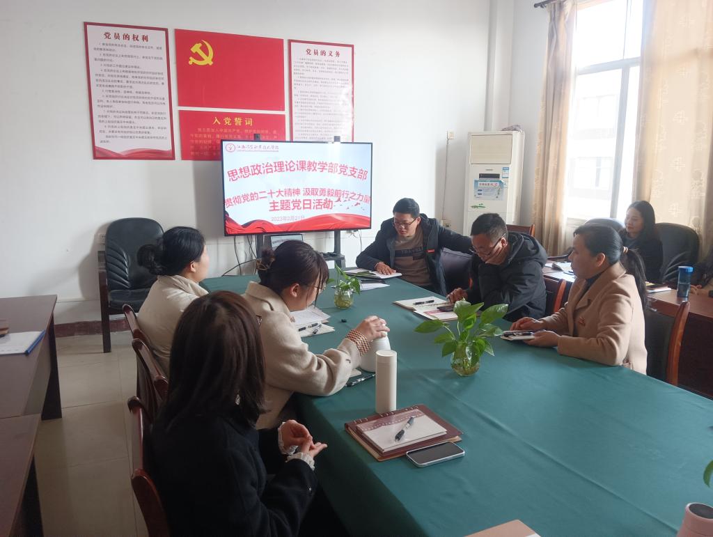 2023年2月21日,思政部党支部全体党员在图书馆401党员活动室开展2023年度2月份主题党日活动。活动由党支部副书记周维主持,全体党员参加。