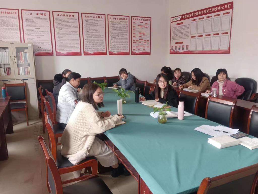 2023年2月28日,思政部全体女职工在图书馆四楼党员活动室开展学习新修订的《中华人民共和国妇女权益保护法》活动。会议由党支部组织委员李丽华主持。