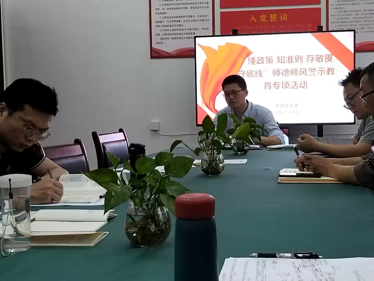 2023年4月18日,根据党委教师工作部《关于开展师德师风自查整改活动的通知》的有关精神,思政部党支部组织开展了“懂政策 知准则 存敬畏 守底线”师德师风警示教育专项学习活动。活动由支部副书记周维主持,全体党员参加。