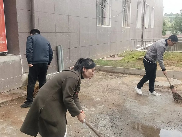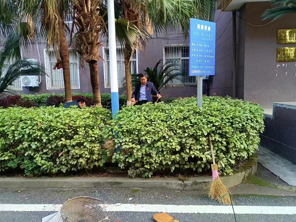 杨乐文在会议结束后立刻赶到指定地点参与到清扫工作中。由于树上经常落叶,草坪内有大量的杂草需要清理,对此,杨书记没有丝毫敷衍,而是非常认真仔细地将草坪打扫干净。