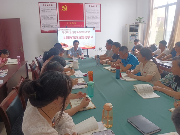 2023年6月6日下午,思想政治理论课教学部召开主题教育政治理论学习,会议由部门负责人周维主持,全体教师参会,校党委书记杨乐文参会并指导。