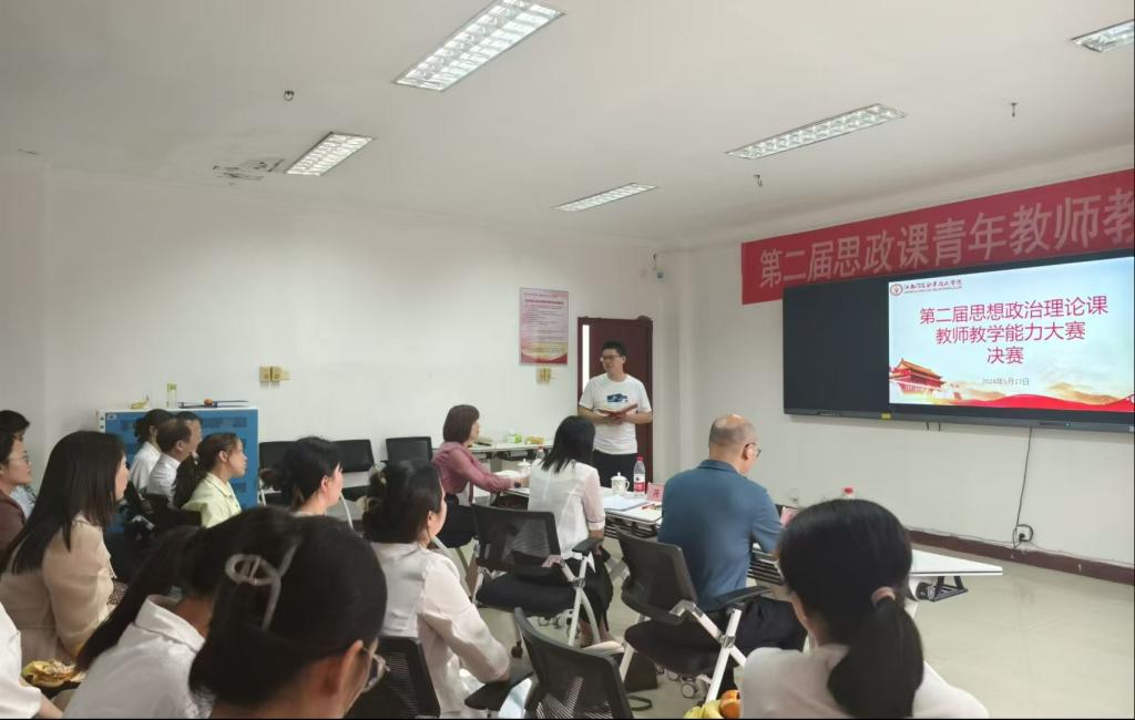 2024年5月17日下午,在图书馆404教室,学校举行了第二届思想政治理论课教师教学能力大赛决赛。决赛邀请了新余学院蒋曦、李洪运博士和赣西科技职业学院黄小芬主任担任评委。学校党委副书记李茂旺视察赛场并讲话。