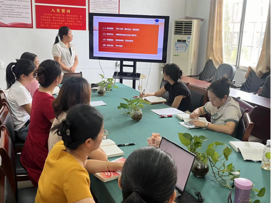集体备课会分为四个阶段进行。首先由青年教师华丽带领大家一起学习文件《中共中央关于党的百年奋斗重大成就和历史经验的决议》、《中共中央关于进一步全面深化改革、推进中国式现代化的决定》选段,深入学习党的创新理论。
