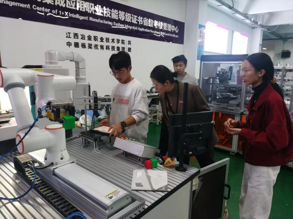 张丽红老师还带着思政部教师参观了工业机器人教学基地,并进行讲解。两位教师通过探讨研究,最终确定了课堂的教学内容和教学重点。