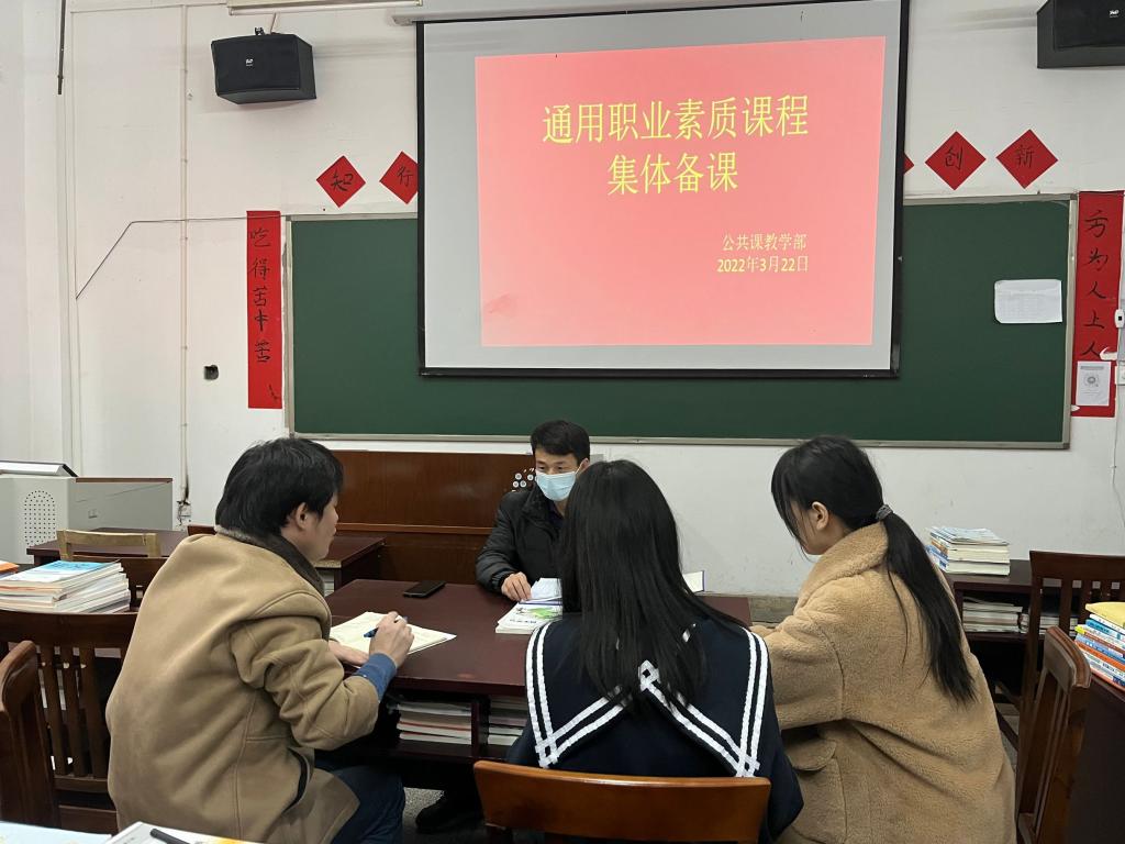 【公共课教学部杨晶报道】为促进教学研讨与交流,切实推进课堂建设,3月22日下午,公共课教学部在明辨楼111室,公共课教学部开展了通用职业素质课程首次集体备课活动。相关课程老师参加了此次备课。