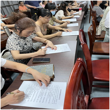 部门全体教师在承诺书上庄重地签上了自己名字,对学校、对社会许下诺言。大家表示,一定要明确履行立德树人职责,维护教师光荣形象,把承诺化为自觉行动,规范自身从教言行,用人格和学识魅力去影响和教育学生。