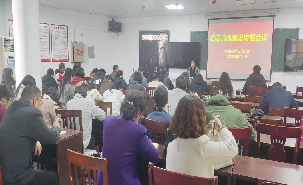 【公共课教学部杨晶报道】为进一步加强师德师风建设,努力培养高尚师德,2023年3月28日下午,公共课教学部组织全体教师召开师德师风建设专题会议,会议由党支部书记邓灵波主持,全体教职员工参加。