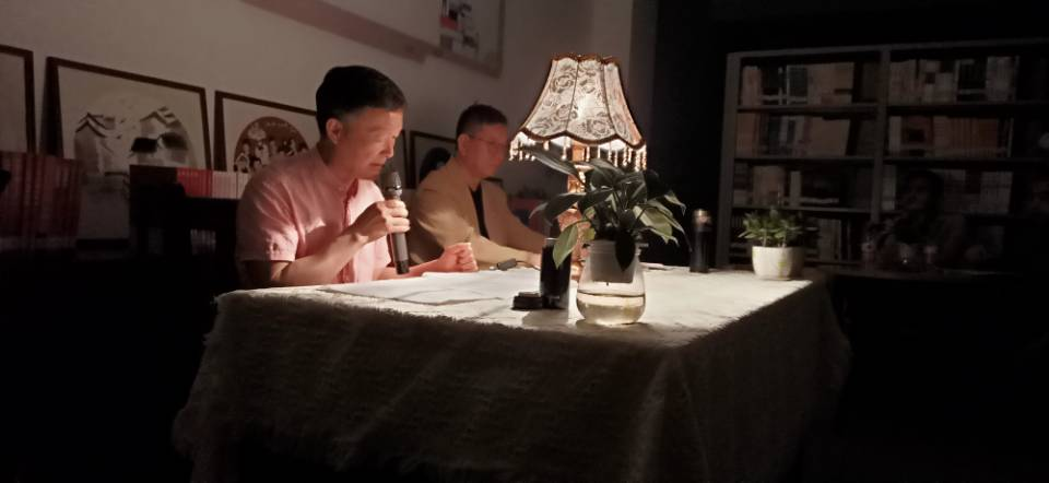 进入聆听朗诵环节,在熄灭现场所有日光灯源,只剩一盏小灯的场景下,主讲嘉宾黄谦老师在静谧的读书现场,用他极富磁性的嗓音和标准的普通话再一次诵读原文,现场所有的同学沉浸地聆听着,品味文字升华而出的情感,享受着一场文章作品和声音作品交相辉映的读书盛宴。