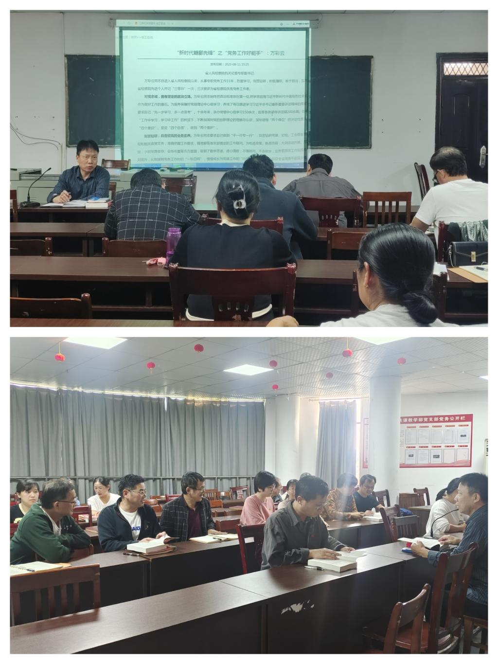 活动伊始,大家集中观看了新时代赣鄱先锋张雪明、罗华、李新长、毛晖圆、蒋洪波等典型事迹并交流发言、畅谈学习感悟。交流结束后,邓灵波带领大家学习了《苦难辉煌》第一张第一节。