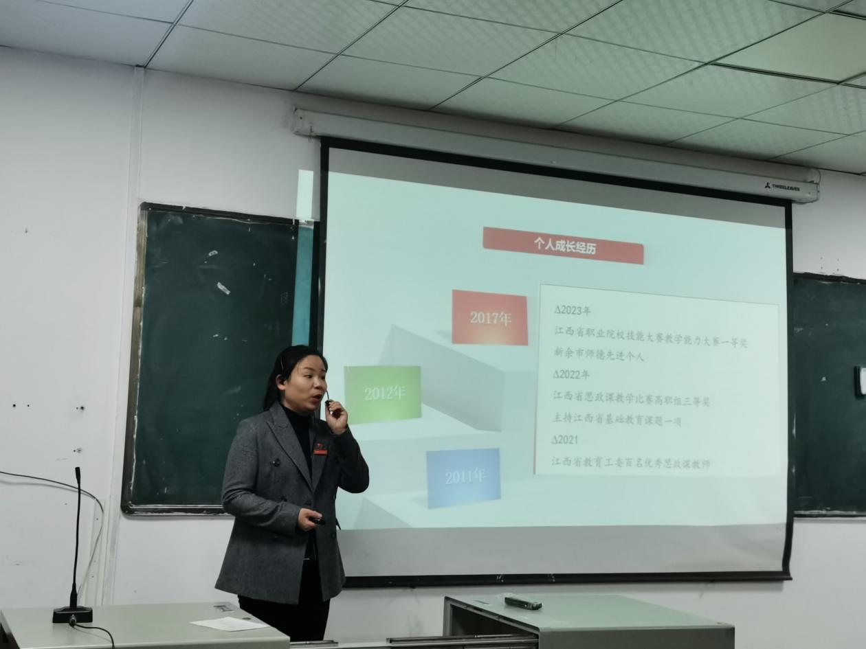 主题教育活动宣讲人刘巧花老师进行宣讲。她讲述了自己的个人成长历程,分享了课程思政的教学经验:教师在教学过程中要有意、有机、有效地对学生进行思想政治教育;课程思政要适时、适度、适当。