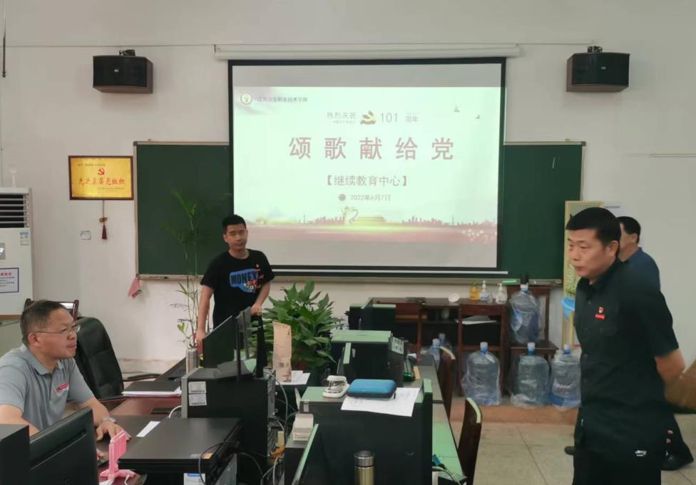 6月7日下午,为庆祝中国共产党成立101周年,传承红色基因,凝聚前行力量,继续教育中心在学校明辨楼113举办以“颂歌献给党”为主题的红歌演唱活动,全体中心人员参与了本次活动。