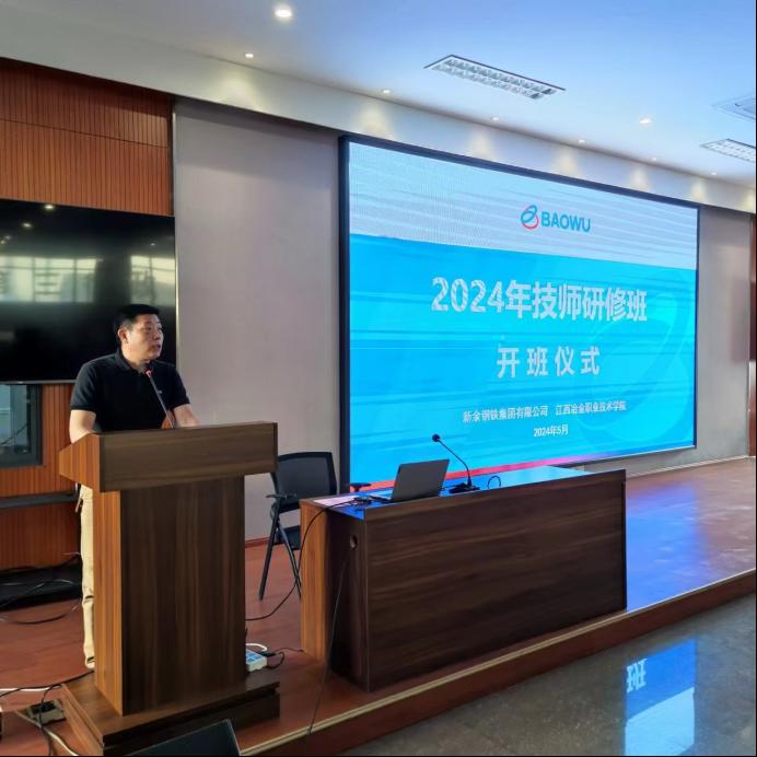 仪式上,郭永飞讲话。他指出,此次技师研修班的开班是为了进一步推动新钢公司高技能人才队伍提质增量,加强技能人员工匠精神和创新意识养成。研修重点是提高操检合一、小改小革、专利申报、技艺传承等能力,持续提高受训人员岗位技能水平,为实现新钢公司“精品硅钢和高品质厚板全球双一流示范企业”战略目标提供人才支撑。