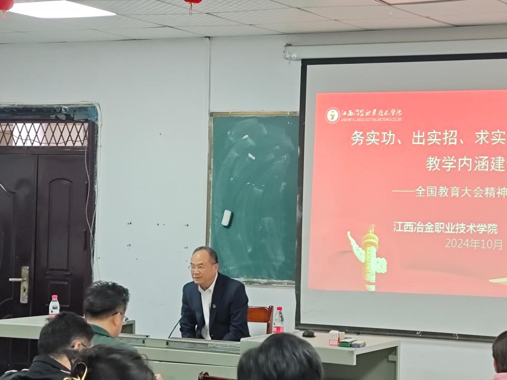 课上,彭全重点聚焦《全国教育大会精神》进行了领学解读并分享学习体会,对其中涉及的建设教育强国、统筹三大战略、提升教育的普惠性进行了细致解读,并联系职业教育内涵建设有关案例进行了分析。