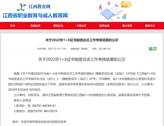 05-29/2023学校2022年1+X证书试点工作被省教育厅考核为优秀档次