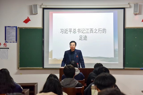 为充分发挥领导干部对学校思想政治教育的示范引领作用,日前,校领导分别来到各个分院,深入课堂,为大学生讲授思政课。 2023年11月30日,院党委书记杨乐文以《习近平总书记江西之行的足迹》为题,在商务管理学院为学生讲授了“形势与政策”课。 杨乐文以习近平总书记江西之行的足迹为引,以习近平总书记考察江西重要讲话精神为线,穿针引线,并以时间为脉络,将井冈山那段峥嵘的岁月、习近平总书记考察江西经济高质量发展...