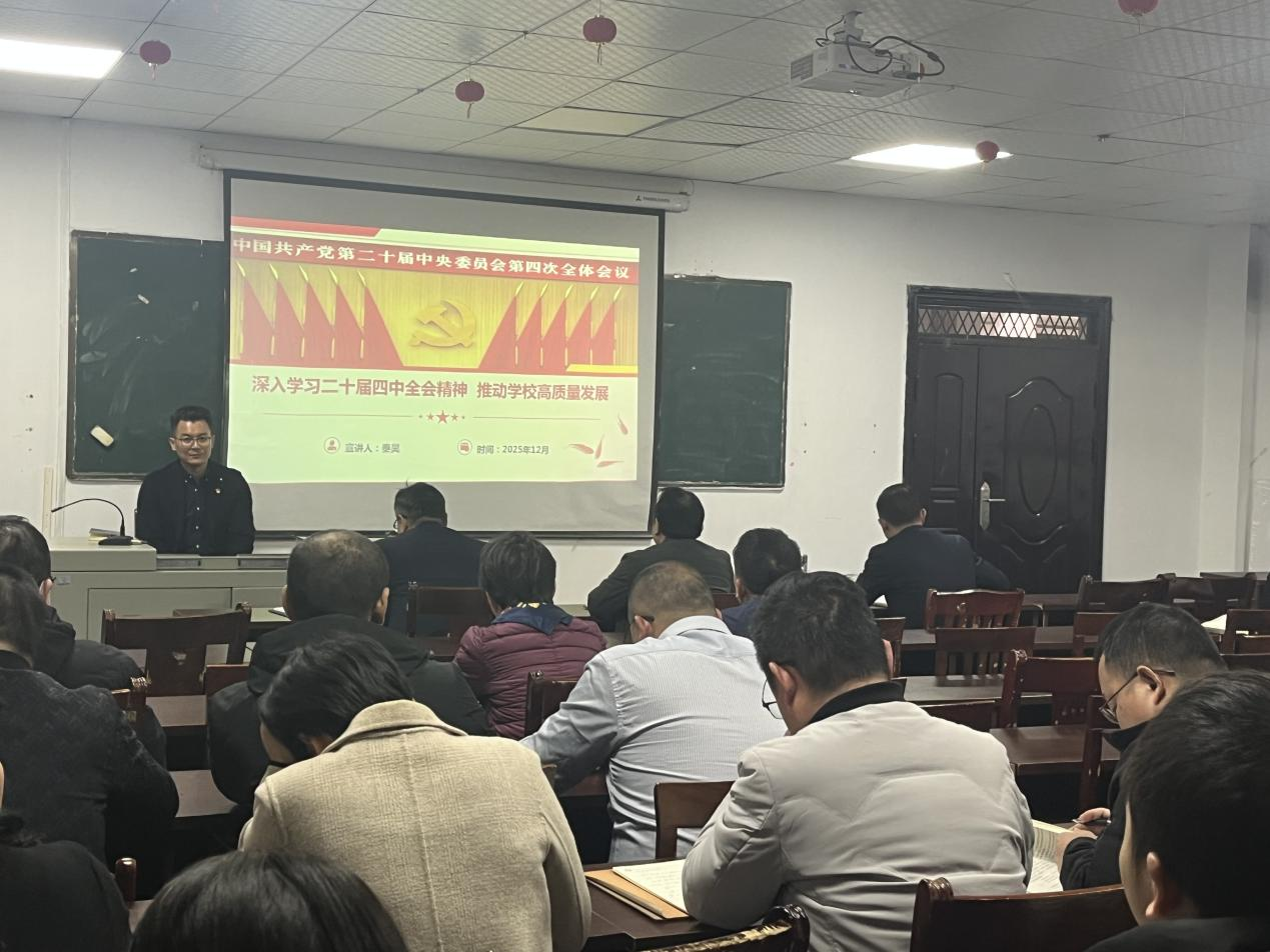 12月31日,为深入学习领会党的二十届四中全会精神,校党委委员、副院长彭全给后勤保障党支部全体教职工讲授专题党课。彭全以“提高大局意识、增强工作责任、围绕新任务、实现新目标”为主题,从四个部分进行了阐述:一是对党的二十届四中全会召开情况作简单介绍;二是理论联系实际学深学细;三是“十五五”期间学校面临的两个跨越;四是坚持问题导向,扎实努力工作。结合学校实际、后勤保障党支部各部门工作的具体情况,彭全对...
