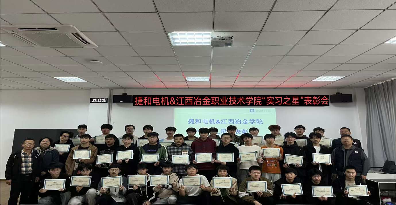 2024年11月17日下午,电气工程学院岗位实习学生受到企业表彰。当天,学校合作企业捷和电机(江西)有限公司在会议室举行了表彰大会。本次表彰大会主题为“青春捷和,榜样力量”。参会人员有该公司高层领导、各部门负责人以及全体师生。 表彰会上,企业评选出来的39名优秀岗位实习学生上台领奖。获奖学生代表发言。他表示,在捷和电机的实习经历让他受益匪浅,将会把实习中学到的知识和经验运用到今后的学习和工作中。 该公...