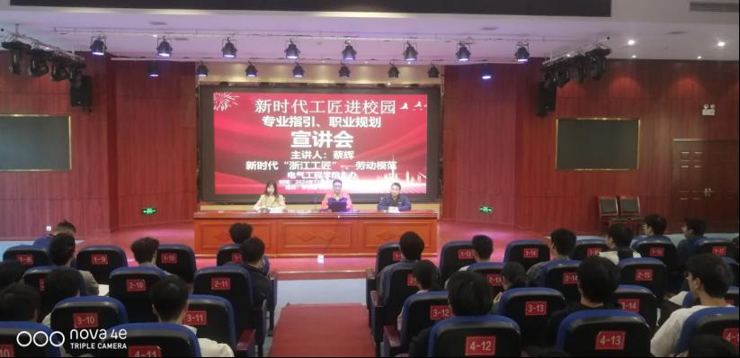 2024年11月8日,电气工程学院举办新时代工匠进校园讲座,特邀新时代“浙江工匠” 、宁波市劳动模范、吉利汽车集团技能大师蔡辉面向分院青年学生宣讲交流。分院院长黄锦文、副院长黄辉和300多名学生代表参加,刘依纯老师主持。 蔡辉讲述了自己成长的经历,介绍了获得的荣誉。通过分享,让广大学子知道了立足岗位为社会做贡献的意义,鼓励同学们站在劳动一线,勇立科技创新前沿,不畏艰难,刻苦钻研。他强调了责任感、专注力以...