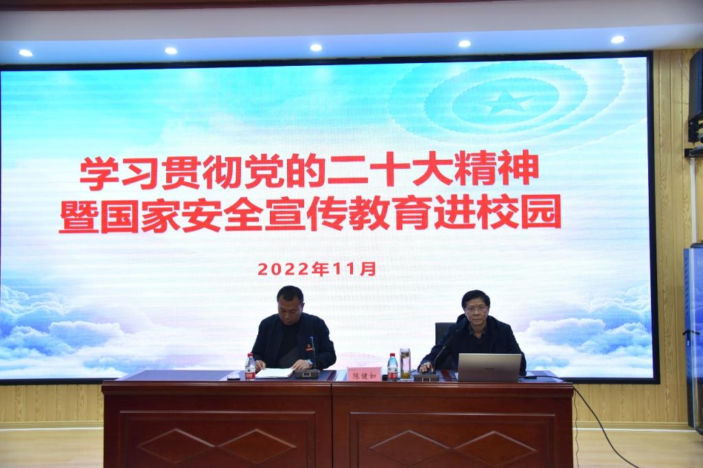 为推动国家安全教育宣传进校园、进课堂、进头脑,11月22日下午,学院邀请新余市委国安办副主任陈健如到校开展《学习贯彻党的二十大精神暨国家安全宣传教育进校园》专题培训。学院相关部门负责人、辅导员代表、全体新入职教师参加了本次培训。 陈健如以《新时代国家安全形势与任务》为题,从党的二十大报告关于国家安全的重要阐述、国家安全工作的概念与历史沿革、总体国家安全观的提出与实践,当前国家安全形势,维护国家安...