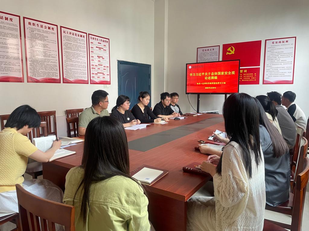 4月29日下午,机关一青年教师理论学习小组在支部党员活动室召开学习研讨会,专题学习习近平总书记关于总体国家安全观论述摘编。与会教师围绕学习主题,结合工作实际交流了学习体会。会议强调,要压紧压实责任,坚决防范化解学校安全领域重大风险。要始终坚持问题导向,牢牢掌握维护政治安全的主动权,敢于斗争、善于斗争,以“时时放心不下”的责任感,坚决维护学校政治安全、校园安全、师生安全