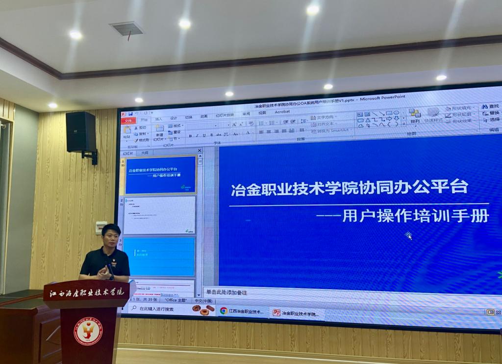 为推进学院2023年重点工作,增强协同办公平台应用效果,全面提高办公效率,6月2日下午,学院党政办组织协同办公平台应用专题培训,各部门负责人及干事参加培训,党政办主任胡靖晟主持培训。党政办主任胡靖晟主持培训此次培训由泛微软件股份有限公司技术人员进行讲解。主要从协同办公平台的多种登录方式、门户界面功能、流程管理、公文管理、移动端的使用等方面入手,采用实例讲解的方式,以发文为切入口,对填写发文稿纸、查看...