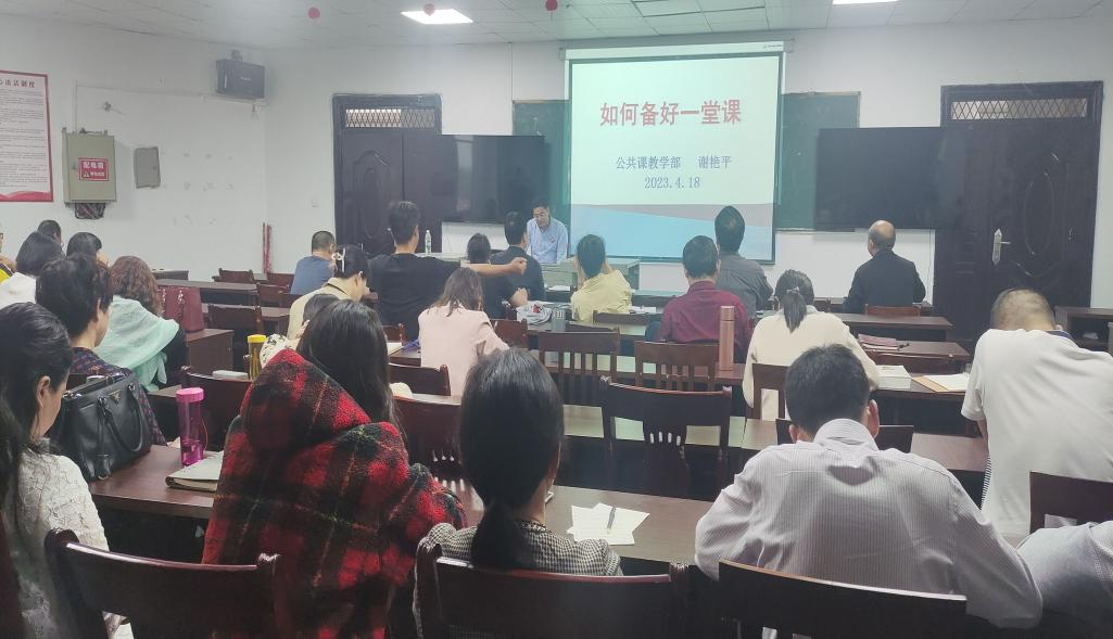 【公共课教学部龚婷报道】为不断夯实课堂教学基础,确保高质量课堂,4月18日下午,公共课教学部在明辨楼312室开展教研活动,语文教研室谢艳平老师带来一堂别开生面的引路课——《如何备好一堂课》。谢艳平老师在最开始就指出,备好一堂课,写教案是十分重要的,教案直接影响教学效果的好与坏。根据教案的编写要求并结合自身多年教学经验,谢艳平老师从什么是教案,为什么要写教案,写教案前的准备工作,如何写相对规范的教案这...