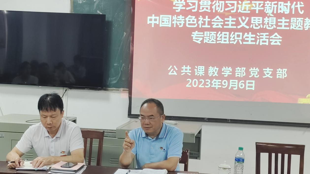 【公共课教学部党支部雷小花报道】9月6日上午,公共课教学部党支部在明辨楼312党员活动室召开学习贯彻习近平新时代中国特色社会主义思想主题教育专题组织生活会。会议由党支部书记邓灵波主持,校党委委员、副院长彭全作为督导组组长出席会议,宣传部廖薇作为督导组成员参加会议。公共课教学部党支部高度重视此次组织生活会的召开。为开好本次会议,党支部在会前组织全体党员认真学习了相关文件精神并交流学习心得,筑牢了思想基...