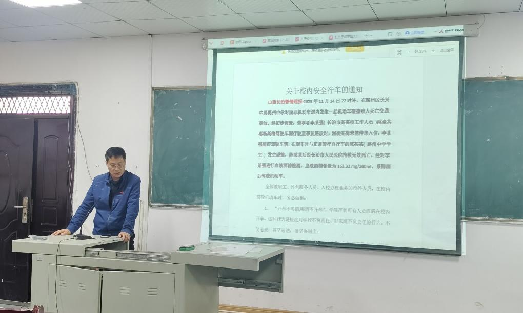 【公共课教学部杨晶报道】11月21日下午,公共课教学部组织教职工在明辨楼312室开展安全学习。会议由党支部书记陈耀新主持,全体教职员工参加。 会上,部长戴宝富和支委委员杨才容先后领学了《关于进一步加强校园安全防范的通知》、《关于校内安全行车的通知》、《关于规范出入校门的通知》三个文件,让全体教职工从思想上进一步强化了校园安全防范意识