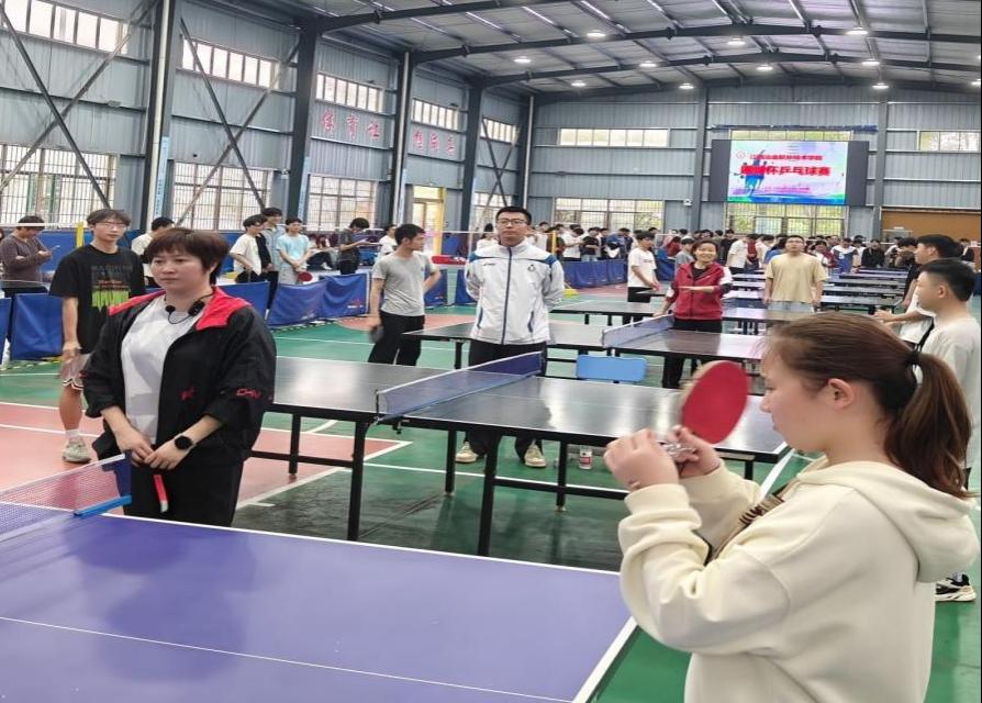 【公共课教学部吴俊峤报道】2024年4月16日下午,一年一度的学校体育文化节在香樟球馆隆重开幕。有关部门、各分院负责人和教师学生六百余人,来到开幕现场,共同见证了这一场年度体育盛事。 体育文化节当日首场赛项是乒乓球赛。偌大的香樟球馆内,九张乒乓球台一字排开。裁判员、运动员各就各位,公共课教学部体育教研室主任、总裁判长袁小阳一声哨响,但见各桌银球飞舞,运动员们竞相跃动,观众们围在各自桌前,组成战队“亲友...
