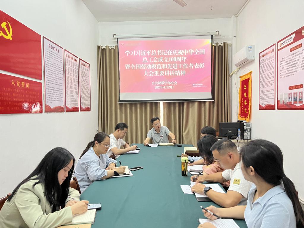 【公共课教学部胡明露报道】2025年4月29日下午,公共课教学部分会主席阮和平组织教职工学习了习近平总书记在庆祝中华全国总工会成立100周年暨全国劳动模范和先进工作者表彰大会重要讲话精神。 通过学习,各位教职工纷纷表示,习近平总书记的重要讲话令人鼓舞人心,我们要以大会精神为指引,以实际行动弘扬劳模精神、劳动精神、工匠精神,将更加脚踏实地、发奋进取、拼搏奉献,用奋斗铸更美好的冶院