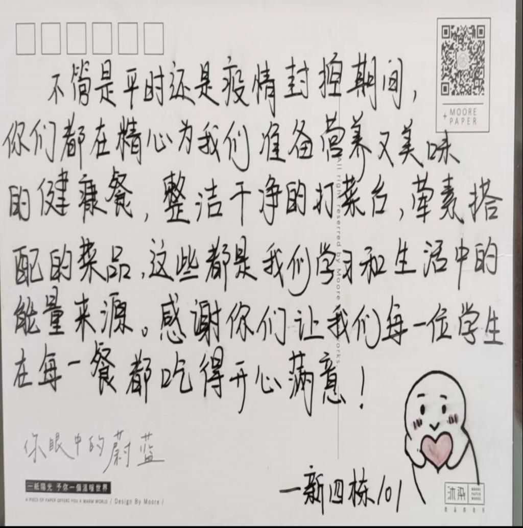 有这样一群人,他们默默地付出,坚守在疫情防控的第一线。他们每天不知疲倦地重复着平凡辛苦而又保障有力的工作。他们就是疫情防控中默默付出的饮食工作者们,是赢得学生致敬的人。10月18日以来,学院南北校区15000余名师生的每日三餐从未间断,食堂的全体工作人员正是这背后的默默守护者。在狭小空间住宿、每天凌晨两点半到岗工作、基本没有休息时间、在有限的食材里精心搭配和调。每一份温热的盒饭都凝结着师傅们的满满心意。...
