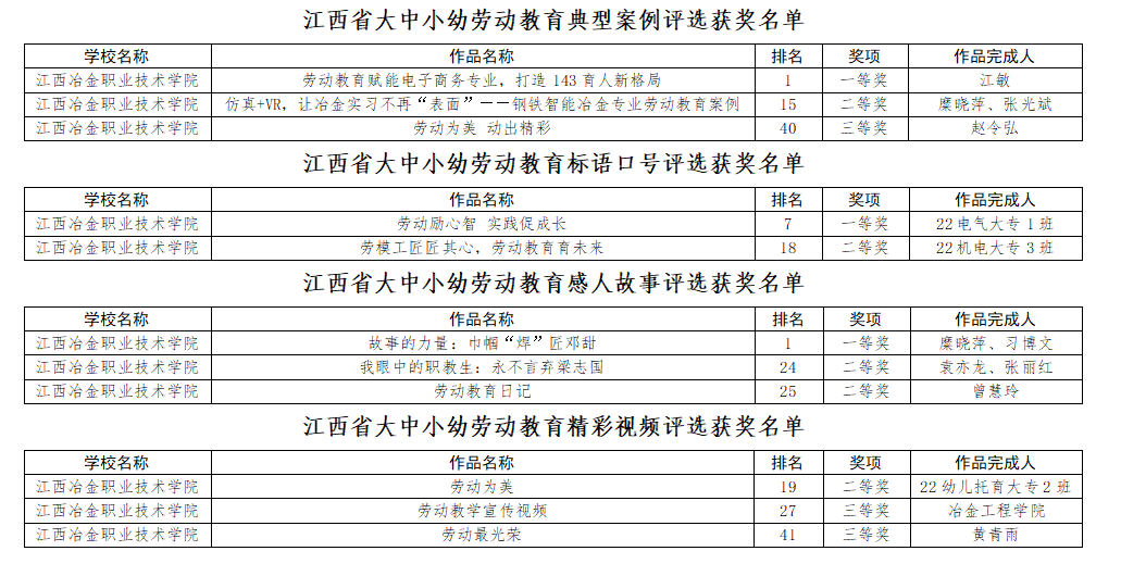 05-07/2024学校在2023年江西省大中小幼劳动教育宣传展示作品征集评选活动中荣获11个奖项