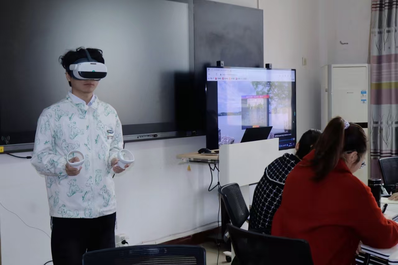 2025年11月11日下午,马克思主义学院沉浸在一场科技与教学深度融合的探索氛围中。全体教师齐聚一堂,共同参与了一场别开生面的VR技术培训,亲身体验虚拟现实技术为思政课堂带来的变化。培训伊始,专业技术人员详细讲解了VR设备的使用流程与教学应用场景。随着设备的启动,抽象的思政理论在虚拟空间中变得可视可感——长征路上的艰辛,这些曾经需要大量语言描述的历史场景与理论内涵,如今通过VR技术实现了“时空穿越”般的沉浸...