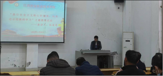 2023年11月28日下午,在商务学院阶梯教室,机关二支部开展“践行社会主义核心价值观,向身边示范教师学习”主题教育活动。活动特邀商务管理学院阮星星老师进行宣讲,机关二支部全体教师参加活动。 宣讲中,阮星星老师分享了自己的学习方法和工作经验。一个个生动的案例,一张张获奖的证书,体现了他对教学工作的热爱和对学生的关心。宣讲活动让现场的教师们深受启发,有青年教师表示,要以阮星星老师为榜样,学习阮老师善学...